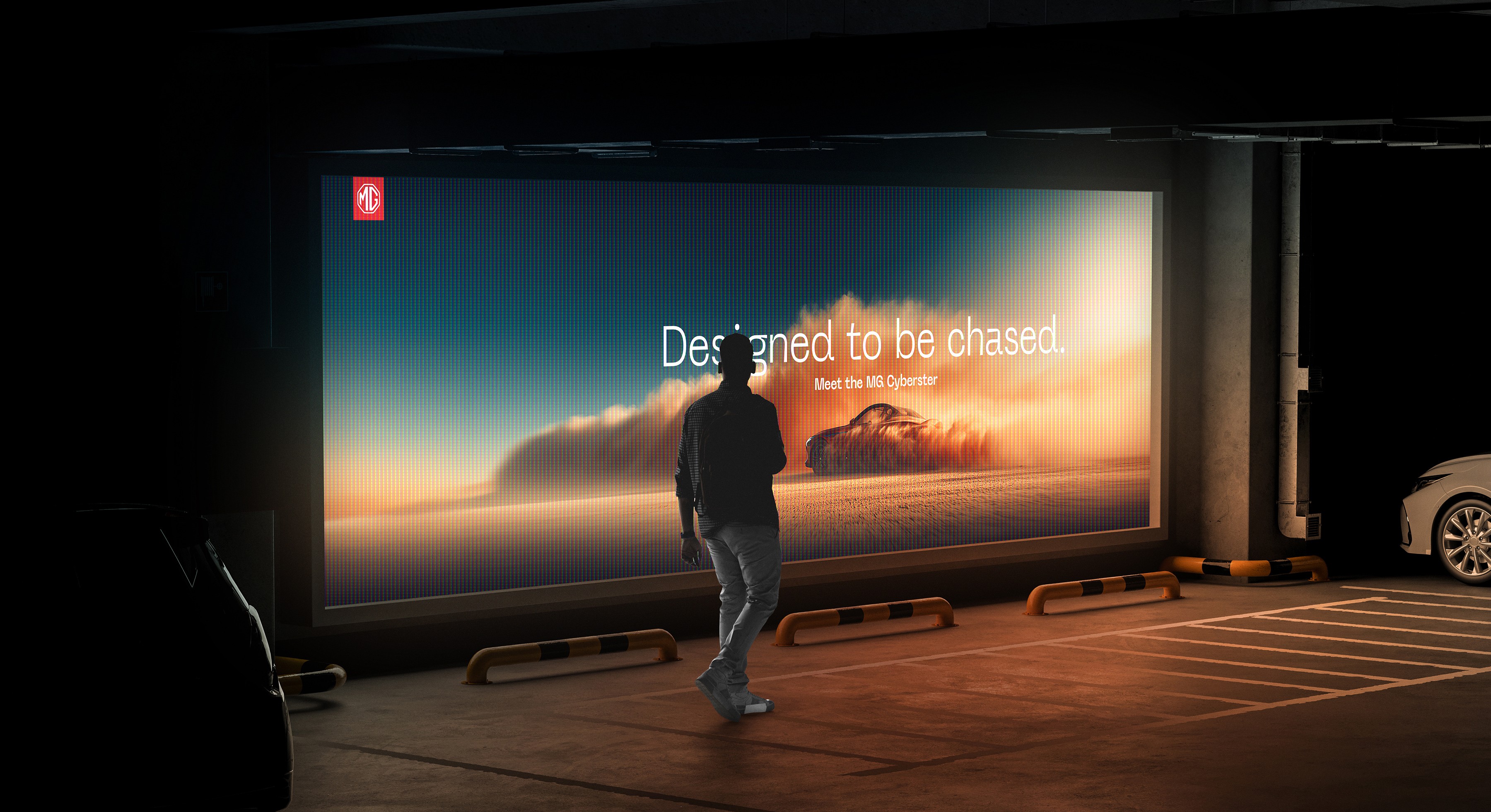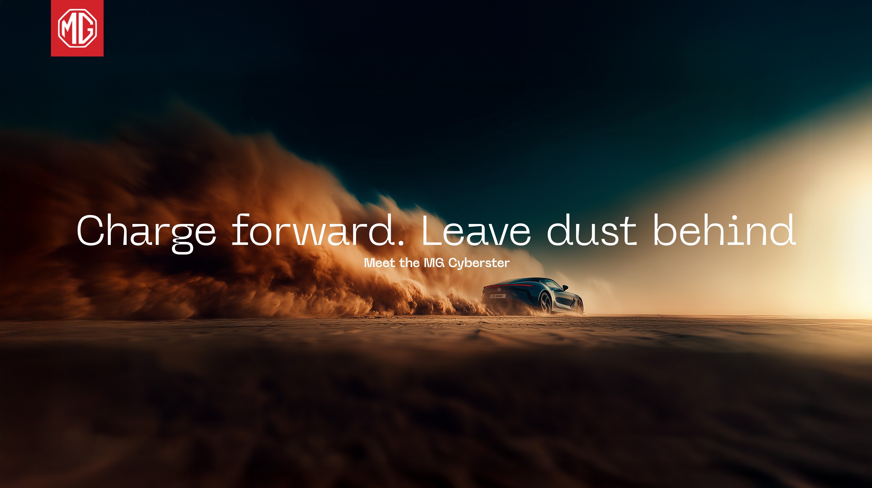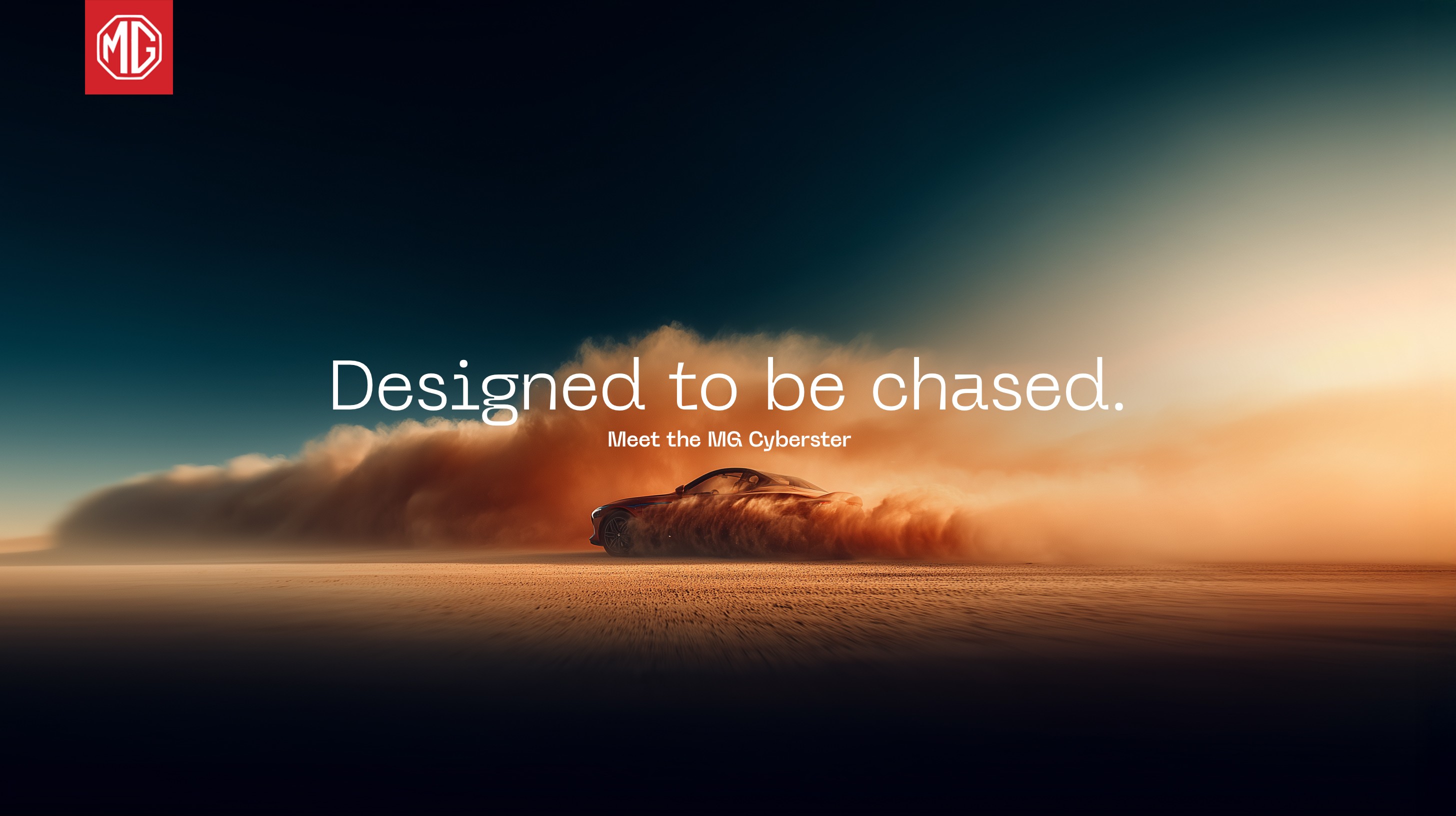 A conceptual campaign showcasing the MG Cyberster GT — a futuristic electric roadster built for speed and emotion. Set in a cinematic desert scene, the visuals highlight its 3.2-second acceleration, dual-motor power, and striking design. Key Focus: Speed, sustainability, and cinematic storytelling. Visuals: Dust trails, heat haze, wide desert landscapes, and golden-hour gradients.